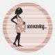 This sticker coordinates with announcements, baby shower invitations & postage stamps found in my shoppe. The design is a pregnant silhouette with mom's hand on her baby belly. She is wearing a pink dotted dress and is on a pink & brown striped background. Perfect for adding that final touch by sealing the envelope.