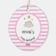 Pink Baby Dino | First Christmas Pink Stripe Chic Ceramic Ornament