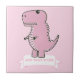 Custom ceramic tiles. Cute pink baby dino drawing. Decor idea. Edit name to customize.
