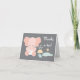 A little blue bird holds up a yellow polka-dot umbrella and stands sweetly and patiently next to a pink baby elephant wearing a pair of diapers with a pink diaper pin on these baby girl baby shower thank you note cards. Artwork © Chrissy H. Studios, LLC. All rights reserved.