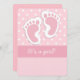 Yes, you can print on the back of your invitation for free! Most designs already have a corresponding design on the back that can be personalized using the Design Tool and going to Layers. This is a great way to communicate more information or further personalize your Pink Baby Footprints Invitation. The option is really up to you.