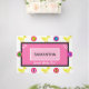 Small yellow ducks around white border. ABC 123 written in black text inside green, yellow, blue, purple, pink, orange geometric circles. Sweet Baby Girl is written in white script. Insert Name in black uppercase text inside center white geometric frame against light pink. Pretty brighter pink with geometric black rectangle border. Original Artwork Design by TamiraZDesigns.