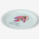 Paper plates with a cute illustration of a sea turtle. Pink body and shell with a floral topping. Looks happy and adorable.