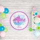 Do, do, do, do - It's Baby Shark swimming in across this design. A pink grinning shark on a background of blue fish, water and bubbles. Customize the name and change baby to whatever you call your little girl. Coordinating designs for Daddy, Mommy, Grandma, Grandpa sharks as well as boy and girl Baby Sharks. Available on other products as well.