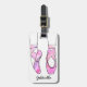 This luggage tag features classic ballerina pointe shoes in a hot pink and purple watercolor design on the front. The back displays your contact information for easy identification. Cute and practical for a backpack, suitcase, or dance bag, and customizable with a name for a personal touch.