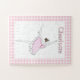Dancing Pink Ballerina Puzzle may be personalized with the name of your favorite little ballerina. Pink checkered frame matches her pink tutu.