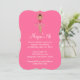 Having your Pink Ballet Birthday Invitation match the theme of your party is a great detail that your guests will appreciate. The thoughtfulness of a consistent party theme is often appreciated and can show your guests that you can host a cohesive event.