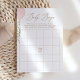 Have baby shower guests participate in an a baby bingo activity with this elegant game card, featuring gold typography and a pink watercolor balloon.