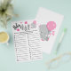 Pink Balloon Elephant Baby ABC Baby Shower Game Card.