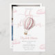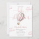 This charming baby shower invitation features a cute pink hot air balloon and clouds, along with elegant script typography. With your registry QR code and special photo on the reverse. Designed by Thisisnotme©