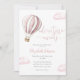 This charming baby shower invitation features a cute pink hot air balloon and clouds, along with elegant script typography. With your registry QR code and special photo on the reverse. Designed by Thisisnotme©