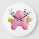 Pink Balloon Letter A Forest Animals Kids Large Clock