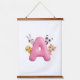 Elevate any nursery with this personalized wood-topped wall tapestry! Featuring a glossy 3D pink balloon Letter A surrounded by adorable forest animals—a panda, bunny, chick, and kitten. The natural wood topper adds charm and sophistication, making it easy to hang and a perfect focal point for any baby girl's room. Fully customizable with any initial, this unique tapestry makes a wonderful keepsake gift.