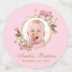 Pink Baptism Girl Photo Floral Geometric Orchids Confetti