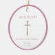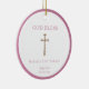 Customizable Baptism ornament keepsake gift, featuring a gold crucifix and pink border.