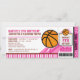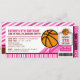 Pink Basketball Ticket Pass Birthday Invitation