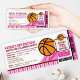 Plain white envelopes are included with paper invitations and will come to fit the invitation size you select. If you don’t need the envelopes, you may choose to not receive them by selecting the dropdown below "Envelopes" and choosing "None." If you’d like to have a design on your envelopes, you can browse all of these available envelopes to find the design that complements your Pink Basketball Ticket Pass Birthday Invitation.