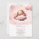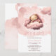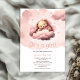 Pink bear on clouds baby shower invitation