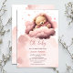 Pink bear on clouds baby shower invitation