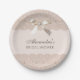 Personalize this exquisite Elegant Bow Bridal shower paper plate, perfect for those who appreciate the elegance and charm of the Regency style. This plate features a stunning satin ribbon bow adorned with a delicate pearl, adding a touch of sophistication to your celebration. The plate is further enhanced by a beige lace pattern and pearl detail, evoking the timeless beauty of vintage lacework. Set against a luxurious pastel rose pink background, this plate exudes an air of opulence and grace. If you love Bridgerton, you will love this bridal shower plate, capturing the essence of the Regency era with its refined and tasteful design. Think bows, satin ribbon, pearls and elegant lace – every detail of this plate has been thoughtfully designed to bring a touch of regency elegance to your Bridal Shower Party, Lunch or Picnic.