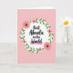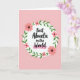 This card features a soft pink background that gives the whole scene a gentle, affectionate glow ❤️. In the center, a bright white circle feels like a quiet space where the message can shine, framed by a leafy wreath that curves like an embracing hug. The wreath is made of rich green leaves with smooth, rounded shapes, suggesting steady care and closeness. Two larger daisy-like flowers in rosy pink sit on opposite sides, their darker centers adding contrast like two warm glances meeting across the circle. Smaller four-petal blossoms in matching pink sprinkle around the ring, adding a light, friendly charm 🌼. The text “Best Abuela in the World” sits centered inside the white circle in flowing black lettering, easy to read against the pale background. A soft pink brushstroke underline rests beneath the final word, slightly off-center, like a gentle finishing touch. Around the circle, the green leaves and pink blooms form an even loop with the biggest flowers anchoring the left and right edges.