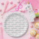 I ordered personalized baby shower plates and I loved them and they were delivered on time they were personalized with thanks for showering our little peanut. The printing turned out good but edge of plates had like tears around the edges I would recommend them to any one having a baby shower or party