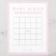 Pink Bingo Baby Shower Game Paper Sheet