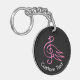 Line art of treble clef symbol forming a pink bird. Custom background color. Custom text on both sides.