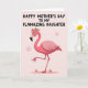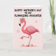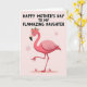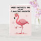 This design shows a soft rosy scene with a coral-pink long‑necked bird standing on one slender leg, posed with a gentle tilt that feels like a shy hello to someone special ❤️. A small ring of tiny pink and yellow blossoms with green leaves rests on its head, adding a sweet, friendly touch. Above the bird, a short message appears in large, rounded lettering, set in a deeper pink that stands out clearly against the light background. The background fades from pale pink to an even lighter blush, sprinkled with tiny sparkles and small star-like shapes that give the moment a dreamy glow. Near the bird’s feet, a few simple flowers and leaf shapes sit along the ground line, as if it’s standing in a little garden clearing 🌼. The bird’s round eye and softly curved beak are drawn to look tender and attentive, like it’s quietly sharing affection with the viewer. Scattered glitter-like dots and petite star accents float around the bird against the pink gradient backdrop.