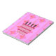 This artwork prominently features a stylized two-tiered birthday cake adorned with lit candles, set against a background of a repeating floral motif. The entire design employs a baby pink color scheme, creating a gentle and inviting aesthetic.