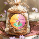 A colorful slice of birthday cake with pink and green decorative icing round sticker to put the finishing touches on all your birthday wishes.