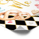 This adorable party sign features whimsical Alice in Wonderland elements in black, pink and gold