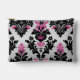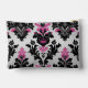 Stylish Pink and Black Damask style pattern on a silver background accessory pouch.