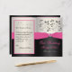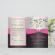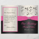 This 8.5"x11" pink, silver, and black floral wedding program has a hot pink FAUX ribbon and jewel brooch that matches the wedding invitation and other items shown below. It is designed to be folded down the center. ****PLEASE NOTE that the higher grade paper is a card stock and does not fold well. All the text is customizable. Existing matching items in this design are shown below. Email niteowlstudio@gmail.com if you need any assistance with the customization of this, or if you have any questions or requests.