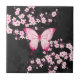Pink Black Butterfly And Cherry Blossoms Ceramic Tile