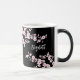 Pretty pink cherry blossom branches with a black background that is matching to the style of the magic mug. Customize this mug with a name. If you click on "personalize this template" and change the name, it changes on both sides of this right-hander and left-hander mug.