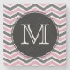 Pink & Black Chevron Monogram Stone Coaster