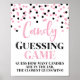 Candy guessing game sign poster for baby shower in a black and pink confetti pattern.