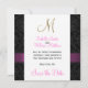 Sophisticated elegance is conveyed by this beautiful wedding Square Save the Date Card design. A black on black damask pattern serves as a background for a photo effect of the Metallic Gold Initial M and a Fuchsia Pink satin ribbon and diamond brooch ALL PRINTED on FLAT CARD Save the Date Wedding Announcements. A perfect way to announce your wedding date. Contemporary, yet classic damask pattern with a design which allows you to personalize the front with your names and the back is free to add your customized save the date text. Design is set for monogram initial "M". For other letters, different ribbon colour and background please contact designer at luxuryweddinginvitations@gmail.com. Layout Design by Elke Clarke©. Graphics licensed. Also, choose from a variety of fonts and beautiful papers to make your engagement announcements PERFECT!