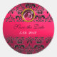 PINK BLACK DAMASK MONOGRAM ,red ruby ,fuchsia Classic Round Sticker