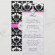 Pink & Black Damask on Silver Metallic Wedding Menu