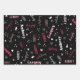 Girly wrapping paper sheet set for birthdays and sweet sixteens with one black wrapping paper sheet with diamonds, hearts, stars and the birthday girl's name in black and white and pink. A pink sheet with white diamonds. And a pale pink sheet with black and white stars.
