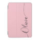 Pink Black Elegant Calligraphy Script Custom Personalized Add Your Own Name iPad Air Cover features a modern and trendy simple and stylish design with your personalized name in elegant hand written calligraphy script typography on a soft pink background. Perfect gift for birthday, Christmas, Mother's Day and stylish enough for the office and school. Designed by ©Evco Studio www.zazzle.com/store/evcostudio
