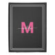 Pink Black Elegant Script Name Monogram Duvet Cover. Design your own personalized chic monogram duvet or comforter cover, perfect for adding a luxurious touch to any bedroom or college dorm room. This stylish bedding features a bold magenta hot pink initial and elegant white script name, set against a sleek black background for a modern, personalized look. The design is framed by double white borders for a polished and refined finish. All colors are fully customizable, allowing you to create a piece that complements your unique style or decor. A thoughtful gift for weddings, housewarmings, birthdays, or any special occasion, this monogrammed cover blends sophistication with practicality, making it a standout addition to any space.