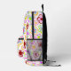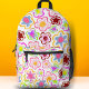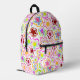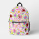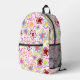 Pink Black Flower Hand-Drawn Pattern Floral Printed Backpack. Hand-drawn pink flowers on a black background.