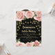 Quinceañera 15th birthday party invitation for girls with beautiful, elegant blush pink roses/flowers with gold glitter and sparkly star string lights on a black background. Personalize by adding your photo to the back of the card.