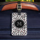 This trendy, fun, black and blush pink leopard spots animal print pattern is a perfect background for a black and white circle tag with your initial on it in white text in an elegant font. GraphicsByMimi© Personalize this bold, stylish, girly leopard print design with your monogram, text, initial or name. Use the template field or use the "customize it" option for a full edit menu. A . Other colors available.