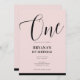 Pink Black Modern Minimal Script ONE 1ST Birthday Invitation
