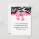 Elegant pink bow with diamond center pink zebra party invitation RSVP template. This chic pink zebra RSVP works great for a pink zebra birthday party invitation, pink zebra wedding invitation, pink zebra baby shower invitation, pink zebra bat mitzvah invitation, and any other special occasion. Add your details to the front and back by simply choosing the orange "Customize it!" button to begin adding your event details, font style, font size & color, and wording. Please note - all of the invitation designs you will find on Zazzle are printed graphics on flat paper stock with no actual jewels, bows, raised, embossed, or added parts or pieces.