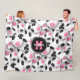 pink black soccer balls pattern monogrammed fleece blanket